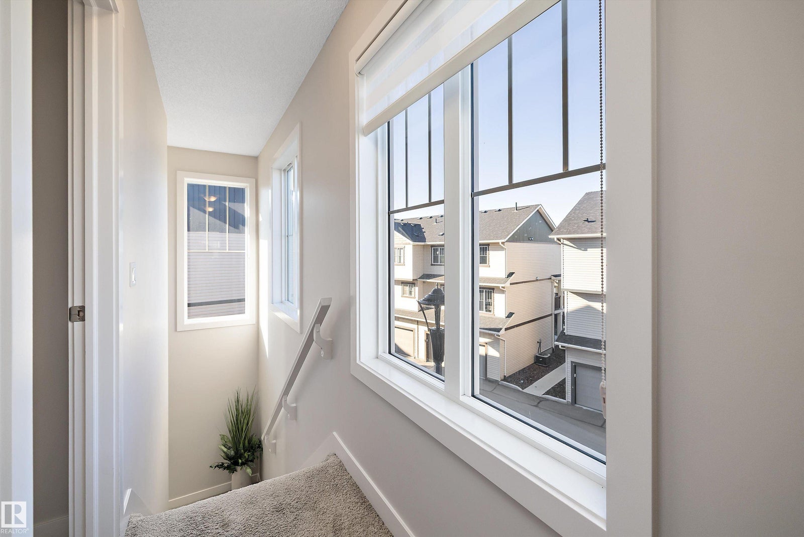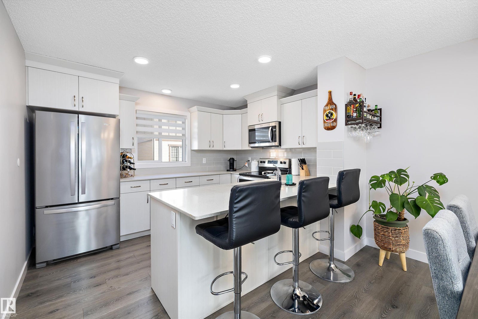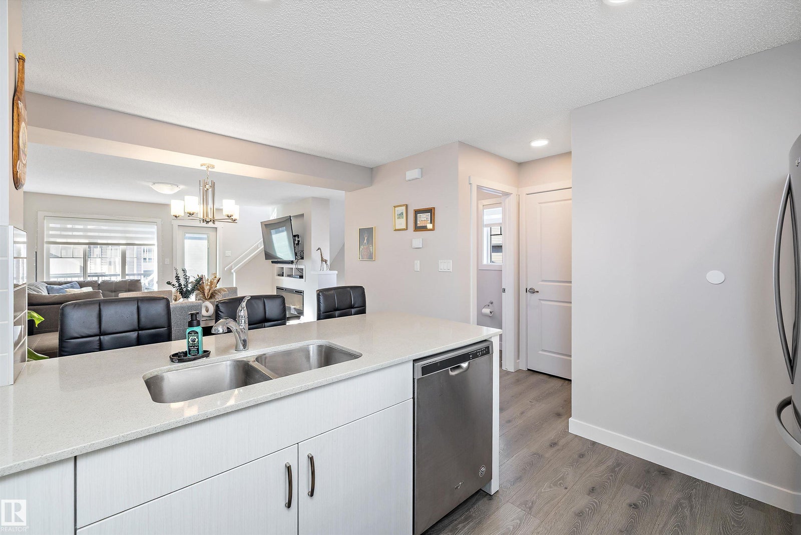 Modern comfort meets convenience in this stylish 3-storey townhouse. This is perfect for first-time buyers ready to own their first home! The entry-level features a bright foyer, extra storage, and access to your double-attached garage ideal for keeping vehicles warm and secure. Upstairs, the open-concept main floor offers a spacious living and dining area, a U-shaped kitchen with quartz countertops, a large walk-in pantry, and stainless steel appliances. Step onto your private deck to enjoy your morning coffee or unwind after work. A handy half bath completes this level. Upstairs, both bedrooms are primary suites, each with its own ensuite and ample closet space, plus laundry right where you need it. Thoughtful finishes include luxury vinyl plank, tile, and carpet throughout. With professional landscaping, low-maintenance living, and visitor parking right beside your home, this move-in-ready property is a smart and stylish choice for today’s buyers.